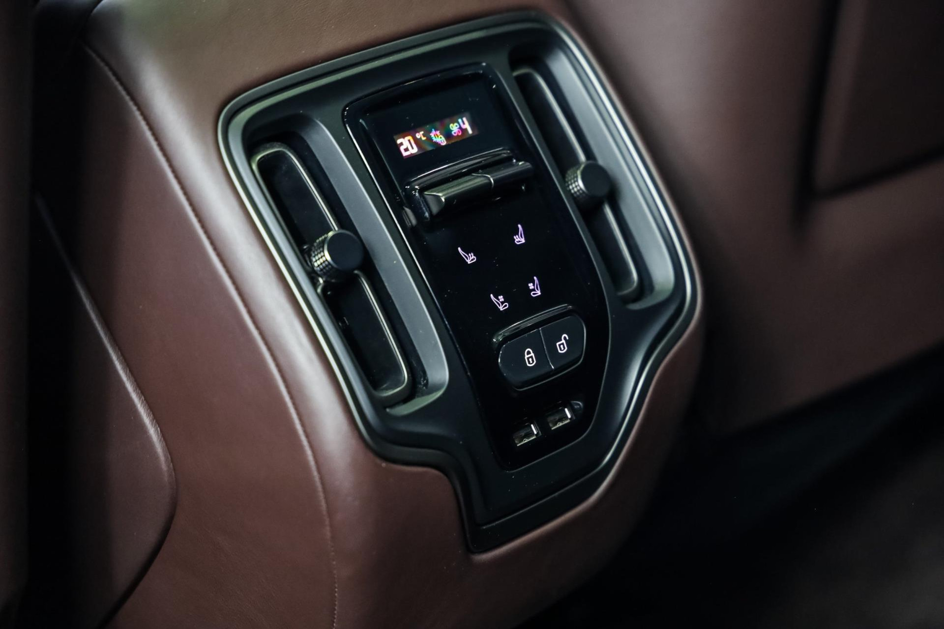 - Armsteun achter met opbergvak en 2 bekerhouders